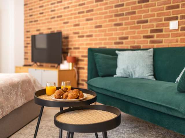 Das Studio bietet ein Schlafzimmer sowie ein Badezimmer mit Dusche, Haartrockner und Waschmaschine. Die Ferienwohnung ist komplett eingerichtet, um den Gästen einen angenehmen Aufenthalt zu bieten.