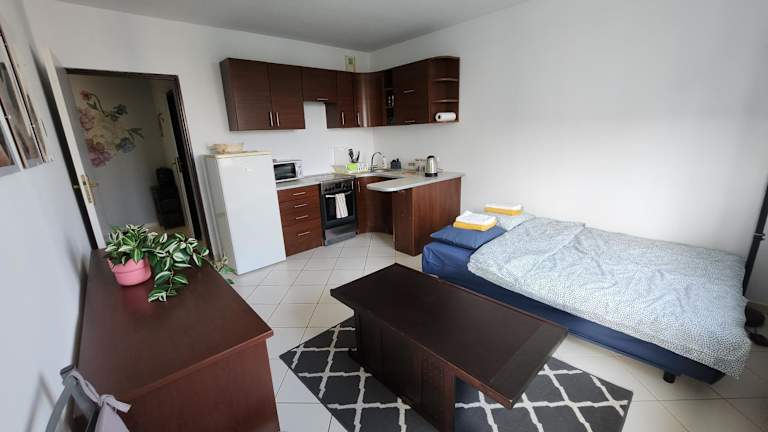 Die Ferienwohnung umfasst 1 Schlafzimmer und ein Wohnzimmer mit einem Flachbild-TV. Die Küchenzeile ist mit einem Kühlschrank und einem Ofen ausgestattet. Die Unterkunft bietet zudem 1 Badezimmer mit Badewanne sowie die Bereitstellung von Handtüchern und Bettwäsche.
