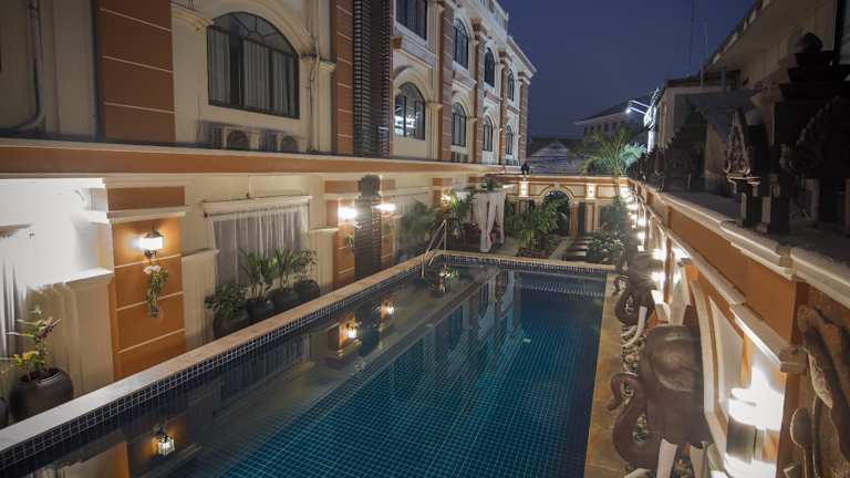 Das Reaksmey Chanreas Hotel befindet sich im beliebten Viertel Old Market, nur 2 Gehminuten von der lebhaften Pub Street entfernt. Es liegt etwa 45 km vom internationalen Flughafen Siem Reap und 15 Fahrminuten von der spektakulären Tempelanlage Angkor Wat entfernt. Der Nachtmarkt Angkor ist in nur 5 Minuten mit dem Auto erreichbar.