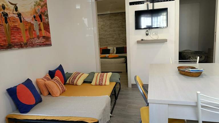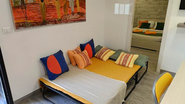 Die Ferienwohnung verfügt über Klimaanlage, 2 Schlafzimmer, ein Wohnzimmer und eine voll ausgestattete Küche mit Kühlschrank und Kaffeemaschine. Es gibt ein Badezimmer mit Bidet und Badewanne oder Dusche. Handtücher und Bettwäsche werden zur Verfügung gestellt.
