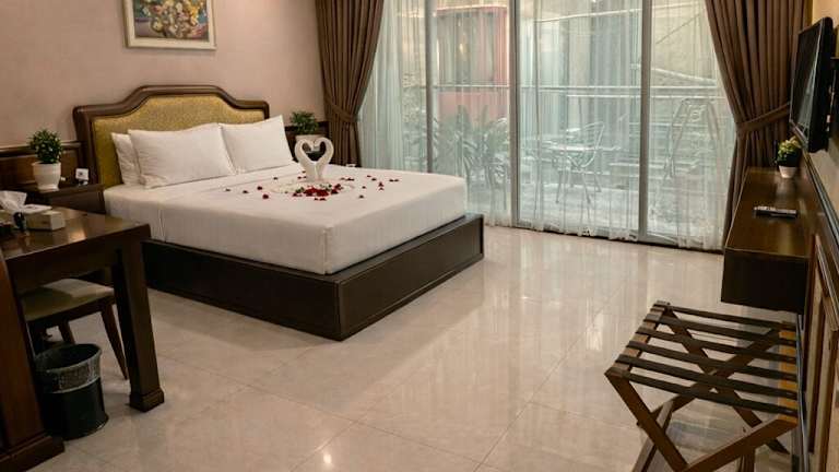 Die Zimmer sind klimatisiert und verfügen über eine Minibar, einen Kühlschrank, einen Flachbild-Kabel-TV und ein eigenes Badezimmer. Die meisten Zimmer haben einen Balkon. Zur Ausstattung gehören zudem ein Safe, Hausschuhe, ein Telefon und Wifi (ohne Gebühr). Die Badezimmer sind mit Dusche, Badewanne und Bidet ausgestattet.