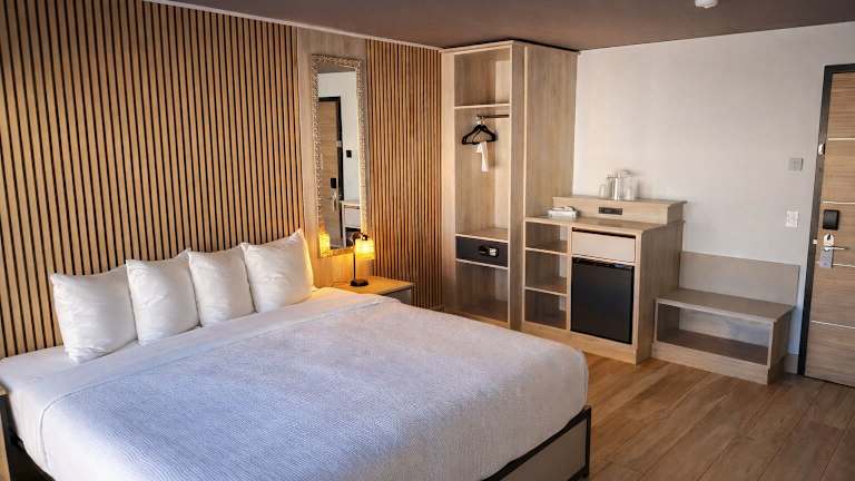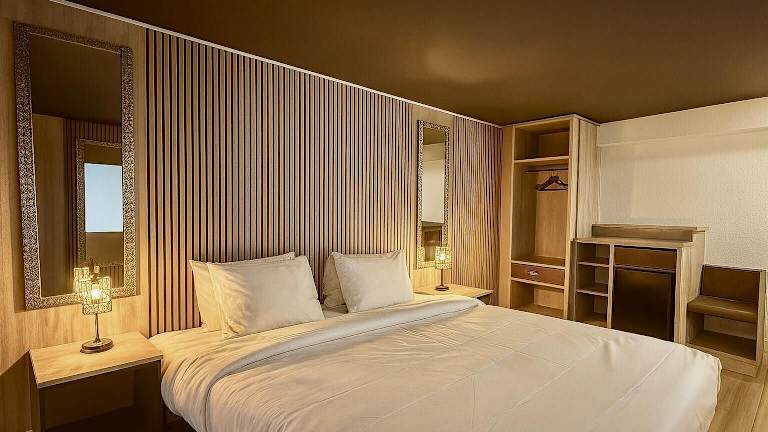 Die Zimmer sind ausgestattet mit Klimaanlage, Heizung, einem Balkon, einem Doppelbett sowie einem Schreibtisch. Zur Einrichtung gehören zudem eine Tee-/Kaffeemaschine, ein Bügelset, Telefon, TV-Gerät und Wifi. Im Badezimmer finden die Gäste eine Dusche und eine Badewanne sowie einen Haartrockner und Kosmetikartikel. Es stehen Familien- und Nichtraucherzimmer zur Verfügung.
