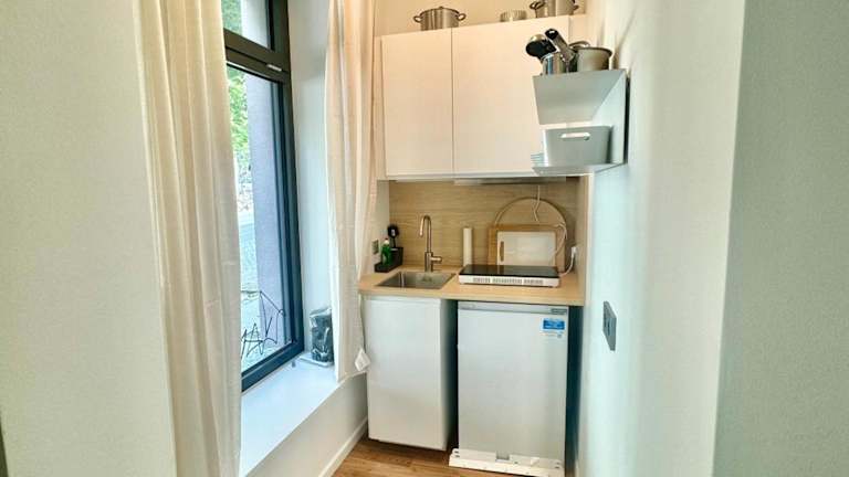 Jede Wohneinheit beinhaltet ein Schlafsofa, einen Sitzbereich, einen Flachbild-TV mit Kabelkanälen sowie eine gut ausgestattete Küche mit Essbereich. Die Badezimmer sind voll ausgestattet und bieten eine Dusche, Haartrockner sowie kostenlose Pflegeprodukte. Zudem steht ein Safe zur Verfügung.