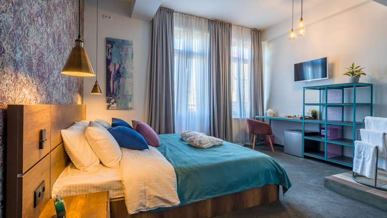 Das Redrum Tbilisi Boutique Hotel bietet Übernachtungsmöglichkeiten mit Freizeiteinrichtungen, darunter eine Bar. Es sind zahlreiche Dienstleistungen verfügbar, wie ein Conciergeservice und eine Gepäckaufbewahrung. Die 24-Stunden-Rezeption sorgt für einen angenehmen Aufenthalt.