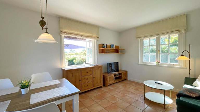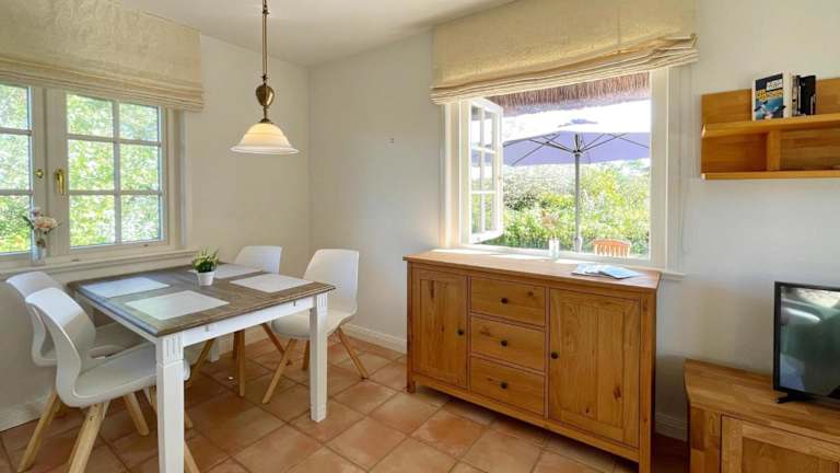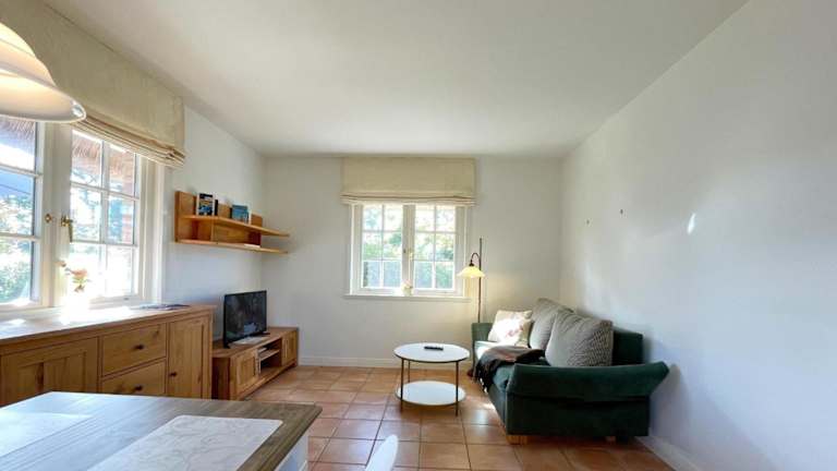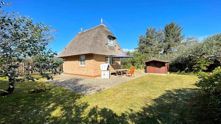 Das Reetdachhäuschen Lütt in Kampen bietet eine heimelige Atmosphäre mit einer Terrasse, einem Garten und kostenlosem WLAN. Kostenlose Privatparkiermöglichkeiten sind ebenfalls vorhanden. Diese Nichtraucherunterkunft ist ideal für Gäste, die Entspannung und eine ruhige Umgebung suchen.
