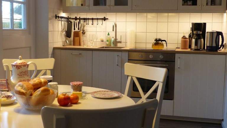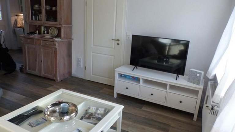 Die Ferienwohnung ist mit einem TV ausgestattet. Die Küchenzeile bietet eine umfassende Ausstattung mit Kühlschrank, Geschirrspüler, Ofen, Kaffeemaschine und Wasserkocher. Dadurch haben die Gäste die Möglichkeit, eigene Mahlzeiten zuzubereiten.