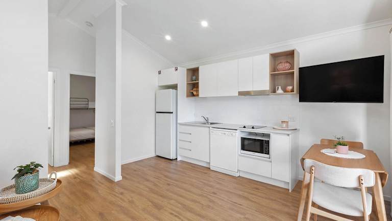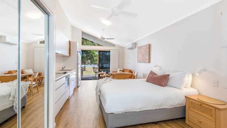 Die klimatisierten Bungalows sind mit einer voll ausgestatteten Küche, einem Essbereich und einem Wohnzimmer mit einem Sofa sowie einem Flachbild-TV ausgestattet. Bettwäsche, Handtücher und Wäsche werden gemäss Richtlinien der örtlichen Behörden gewaschen. Die Unterkunft ist rollstuhlgerecht und bietet Einrichtungen für behinderte Gäste.