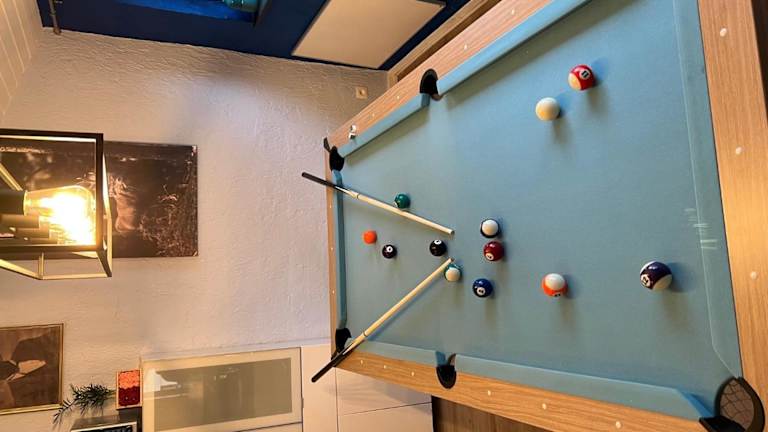 Eine Küche steht zur Verfügung, ausgestattet mit einem Kühlschrank und einem Geschirrspüler, wodurch die Zubereitung eigener Mahlzeiten möglich ist. Hinweise zu Verpflegungsmöglichkeiten oder Speisen sind nicht gegeben.