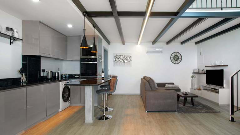 Die Unterkunft verfügt über ein Schlafzimmer, eine Küche mit Kühlschrank und Geschirrspüler, eine Waschmaschine sowie zwei Badezimmer mit kostenlosen Pflegeprodukten und einem Haartrockner. Des Weiteren gibt es einen TV mit Kabelkanälen.