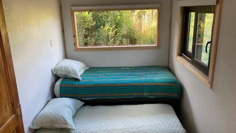 Das Ferienhaus verfügt über zwei Schlafzimmer, eine Küche mit Kühlschrank, Toaster und Kaffeemaschine. Handtücher und Bettwäsche werden bereitgestellt.