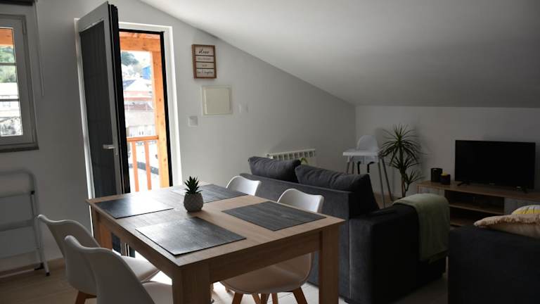 Die Ferienwohnung verfügt über 2 Schlafzimmer, ein Wohnzimmer mit Flachbild-TV, eine gut ausgestattete Küche mit Kühlschrank und Mikrowelle sowie ein Badezimmer mit Dusche. Zudem ist ein Balkon mit Flussblick vorhanden. Handtücher und Bettwäsche werden bereitgestellt.