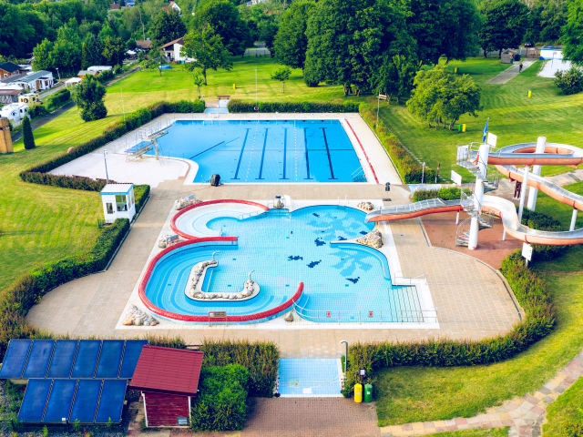 Im beheizten Erlebnisbad der Gemeinde Dransfeld direkt an unserer Ferienanlage laden mehrere Becken zum sommerlichen Sprung ins Wasser ein. Das großzügige Sportbecken lässt Trainierende auf ihre Kosten kommen. Das Erlebnisbecken mit Wildwasserkanal, Sitzbrodel, Wasserpilzen und Großwasserrutsche bringt Spaß für groß und klein. Im Kinderbecken sind Quelltöpfe, Bodenbrodler, eine Rutsche und ein Wasserpilz zu finden. Auf der großen Liegewiese können Sie ordentlich Sonne tanken und entspannen.