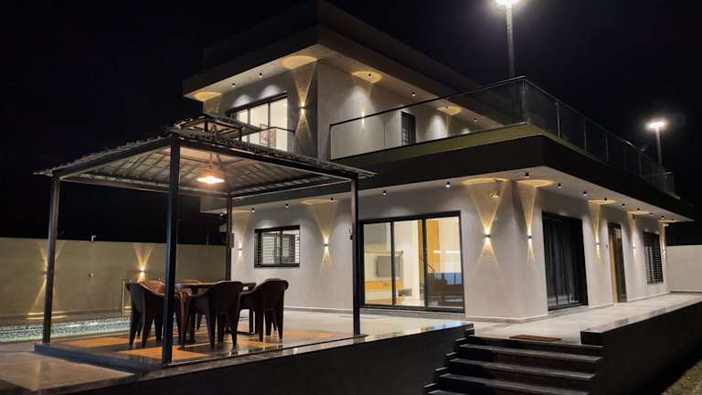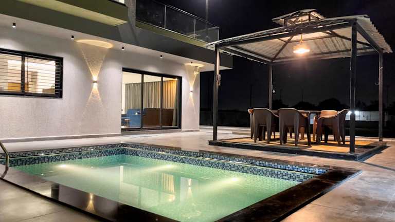 Das Regency Farm House With Pvt Swimming Pool Surat bietet ein heimeliges Ambiente mit Gartenblick sowie einem privaten Aussenpool. Die Unterkunft umfasst 4 Schlafzimmer, ein Wohnzimmer und eine voll ausgestattete Küche. Zu den Annehmlichkeiten gehören ein Kinderspielplatz, Grillmöglichkeiten und kostenloses Wifi.