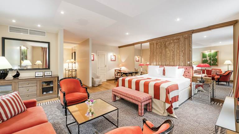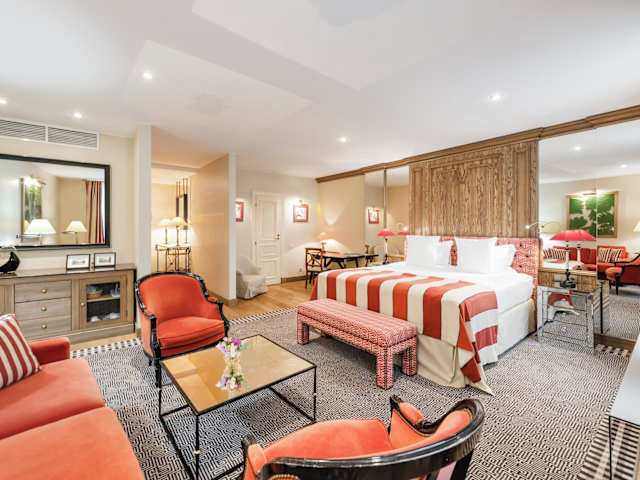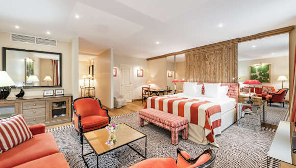 Die eleganten Zimmer sind klimatisiert und mit hochwertigen Stoffen und antiken Möbeln ausgestattet. Sie verfügen über eine Minibar, einen Safe, einen Flachbild-Sat-TV sowie kostenfreies Internet. In den Badezimmern stehen Dusche und Badewanne, kostenfreie Pflegeprodukte, Bademäntel und Hausschuhe zur Verfügung. Es sind rollstuhlgerechte Zimmer sowie Familienzimmer buchbar.