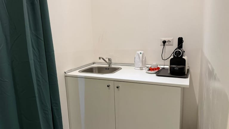 Die Zimmer verfügen über Tee- und Kaffeezubehör sowie Kapseln, abgepackte süsse Produkte und Marmeladen. Weitere Verpflegungsmöglichkeiten sind nicht vorhanden.