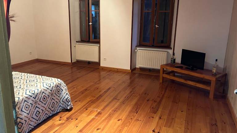 Das Privatzimmer ist ausgestattet mit einem Flachbild-TV und bietet eine angenehme Atmosphäre. Zudem können die Gäste den Garten sowie die Terrasse nutzen, um die Aussicht zu geniessen.