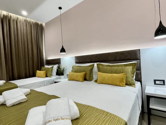 Das Relax Apts Saranda liegt nur 500 m vom Hauptstrand von Sarande entfernt und bietet somit eine ideale Lage für alle, die die Sonne und das Meer genießen möchten. In der Umgebung finden Sie auch weitere Strände wie den Saranda Bay Beach und den Saranda City Beach. Darüber hinaus gibt es viele Möglichkeiten, die Umgebung zu erkunden und an Aktivitäten wie Angeln teilzunehmen. Der nächste Flughafen, der Flughafen Ioannina, ist etwa 98 km entfernt und kann gegen Gebühr mit dem Flughafentransfer der Unterkunft erreicht werden.