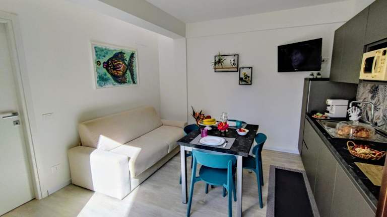 Jede Wohneinheit verfügt über ein eigenes Badezimmer mit Bidet, eine Klimaanlage, einen Flachbild-TV sowie einen Kühlschrank. Die voll ausgestatteten Badezimmer sind mit einer Dusche und einem Haartrockner ausgestattet.