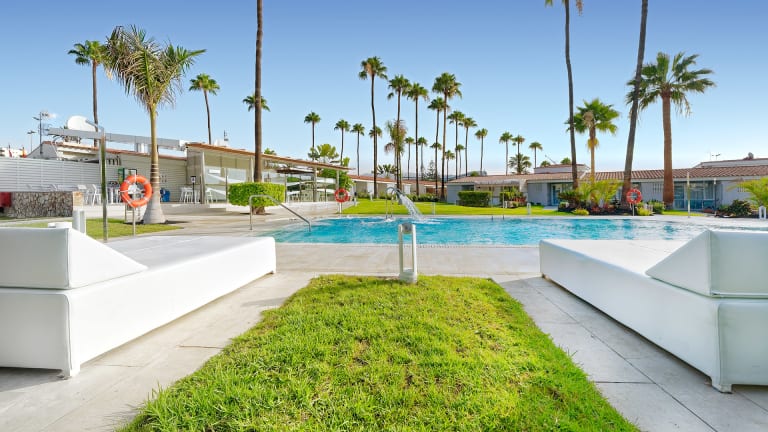 Verbringen Sie einen entspannten Familienurlaub im Hotel Relaxia Los Girasoles Bungalows in Playa del Inglés. Die ruhige Lage und die gepflegten Gärten sorgen für eine angenehme Atmosphäre. Jeder Bungalow verfügt über einen eigenen kleinen Vorgarten, in dem Sie die Sonne genießen können. Die gut ausgestattete Küche ermöglicht es Ihnen, Ihre eigenen Mahlzeiten zuzubereiten, während Sie in der Lounge entspannen. Der Komplex verfügt über einen Pool, in dem Sie sich erfrischen können, sowie eine Bar für einen entspannten Drink. Der nahegelegene Strand Playa del Inglés lädt zu Spaziergängen und einem erfrischenden Bad im Atlantik ein. Sie können auch das lebhafte Zentrum von Playa del Inglés erkunden und das pulsierende Nachtleben erleben.