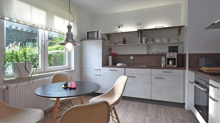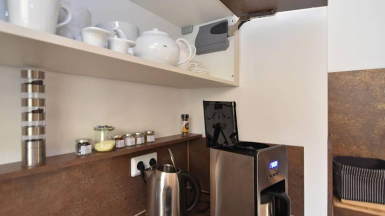 Die gut ausgestattete Küche verfügt über einen Kühlschrank und einen Geschirrspüler, wodurch Selbstversorgung erleichtert wird. Grillmöglichkeiten sind ebenfalls vorhanden.