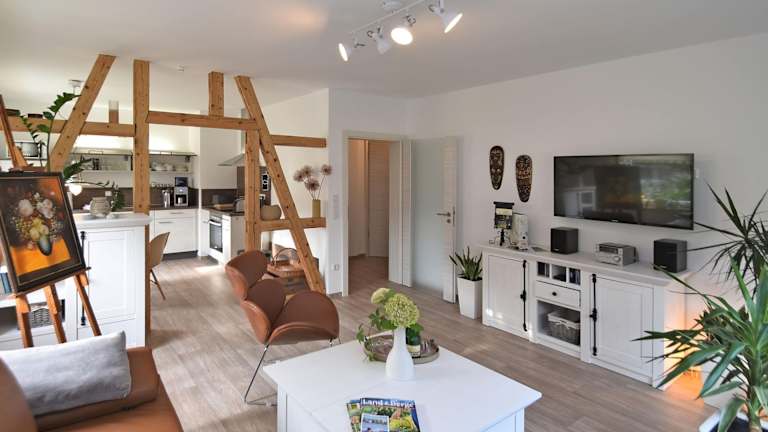 Die Ferienwohnung beinhaltet 2 Schlafzimmer, ein Wohnzimmer, einen Flachbild-TV und 4 Badezimmer mit Dusche. Handtücher und Bettwäsche werden zur Verfügung gestellt. Eine Terrasse bietet einen schönen Blick auf den Garten.