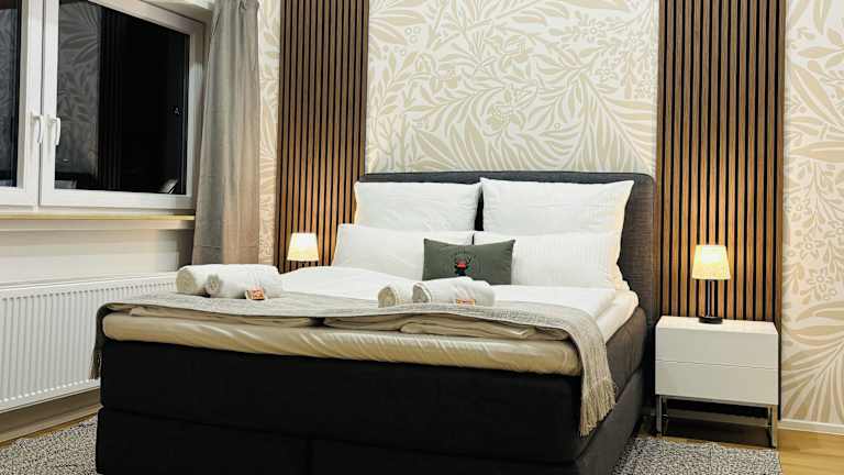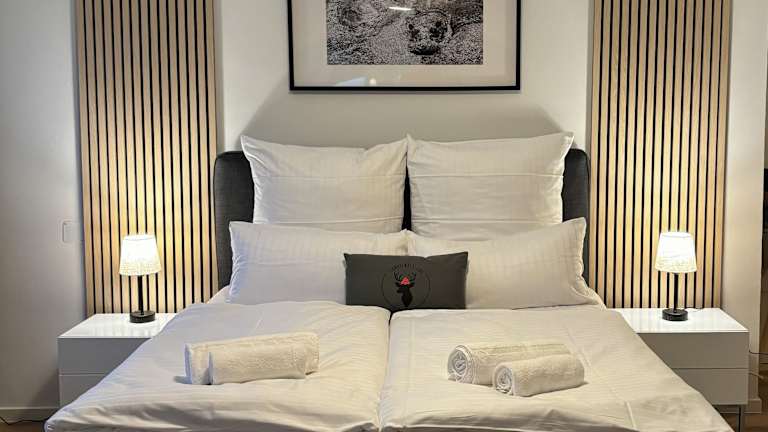 Die Ferienwohnung verfügt über 2 Schlafzimmer mit 3 Queen Size Betten, ein geräumiges Wohnzimmer sowie eine voll ausgestattete Küche mit Kühlschrank und Kaffeemaschine. Zusätzlich bietet die Unterkunft 2 Badezimmer mit Dusche und kostenlosen Pflegeprodukten. Handtücher und Bettwäsche werden zur Verfügung gestellt. Die Unterkunft ist klimatisiert und bietet kostenloses Wifi.