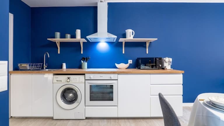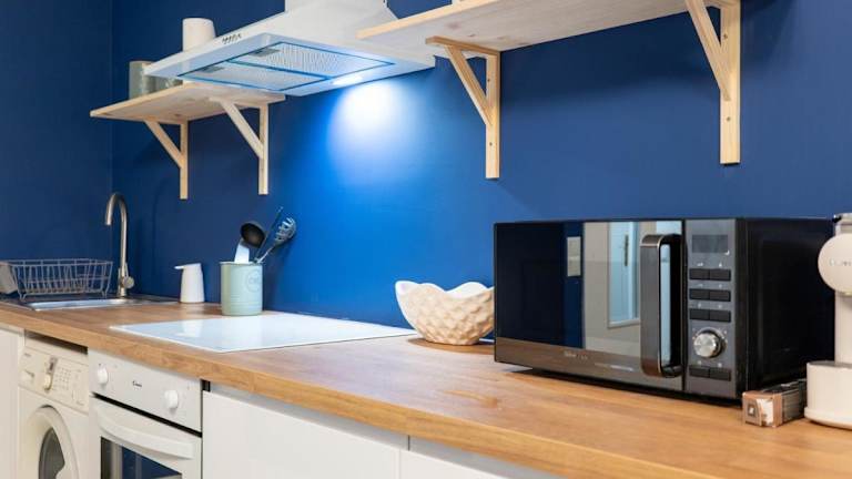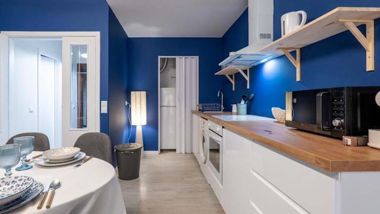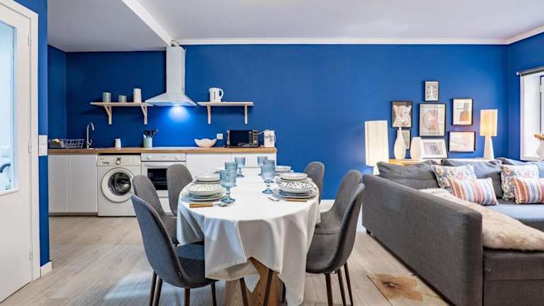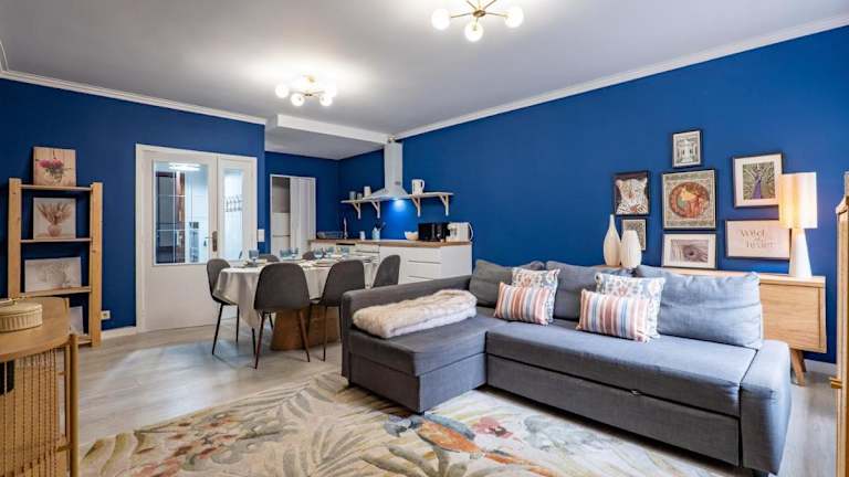 Die Ferienwohnung umfasst zwei Schlafzimmer und ist mit einem Flachbild-TV mit Kabelkanälen ausgestattet. Eine gut ausgestattete Küche mit Kühlschrank und Ofen ist ebenfalls vorhanden. Das Badezimmer ist mit einem Bidet ausgestattet. Handtücher und Bettwäsche werden bereitgestellt.