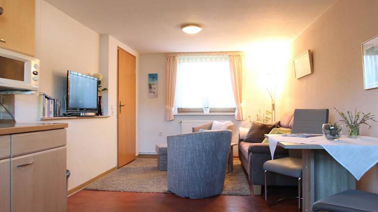 Die Ferienwohnung verfügt über 1 Schlafzimmer, eine Küche mit Kühlschrank, einen TV, einen Sitzbereich sowie ein Badezimmer mit Dusche. Die Unterkunft bietet zudem kostenfreies Wifi, Gartenmöbel sowie einen kostenlosen Privatparkplatz.