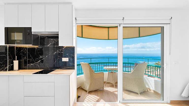 Das Panoramic Seaview Las Vistas Beach Studio Apartment bietet einen Balkon mit Stadtblick, einen Aussenpool sowie eine Terrasse. Die Unterkunft wird von einem privaten Gastgeber geführt und ist vollständig Nichtraucher.
