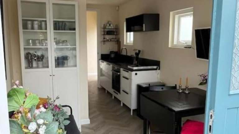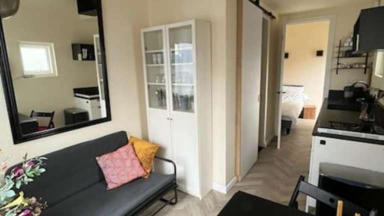 Das Renovated & private Tinyhouse in Den Haag ist eine gemütliche Ferienwohnung in einem Gebäude aus dem Jahr 1950, die sich direkt am Strand befindet. Es handelt sich um eine private Unterkunft, die eine heimelige Atmosphäre ausstrahlt.