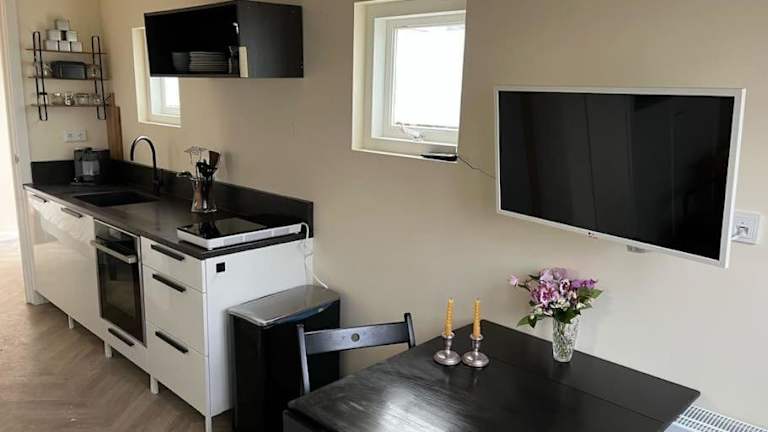 Die Ferienwohnung verfügt über 1 Schlafzimmer, ein Wohnzimmer, eine voll ausgestattete Küche mit Kühlschrank und Kaffeemaschine sowie 1 Badezimmer mit Dusche. Handtücher und Bettwäsche werden ebenfalls bereitgestellt.