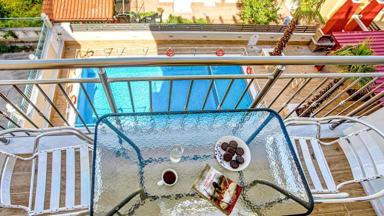 Jede Wohneinheit verfügt über eine gut ausgestattete Küche mit Kühlschrank, Herdplatte, Kaffeemaschine und Wasserkocher sowie eine Terrasse mit Stadtblick. Die Zimmer sind schallisoliert und bieten bei Bedarf eine Klimaanlage.