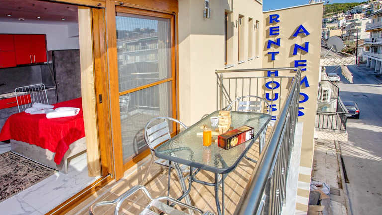 RENT HOUSE ANEMOS bietet Wohneinheiten mit kostenlosem Wifi und Klimaanlage. Zudem stehen ein saisonaler Aussenpool und Grillmöglichkeiten zur Verfügung. Jede Wohneinheit ist ausgestattet mit einer Terrasse mit Stadtblick, einem Satelliten-Flachbild-TV, einer gut ausgestatteten Küche und einem eigenen Badezimmer mit Dusche und Haartrockner.