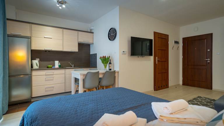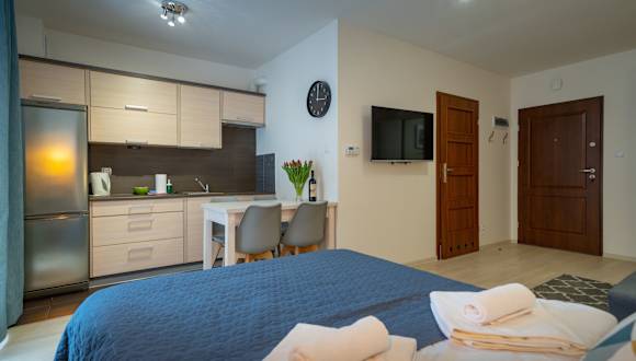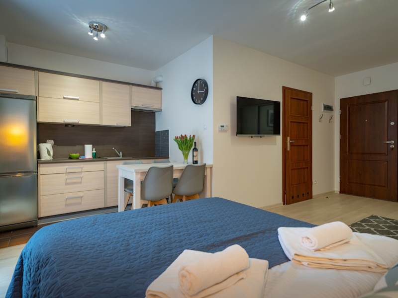 RentPlanet - Apartamenty Grabskiego bietet eine moderne und heimelige Atmosphäre mit voll ausgestatteten Wohneinheiten. Die Anreise ist ab 15:00 Uhr möglich, während der Check-out bis 11:00 Uhr erfolgen muss. Es sind keine Feierlichkeiten wie Junggesellenabschiede gestattet, und Haustiere sind nur auf Anfrage erlaubt.