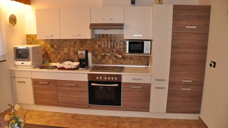 Die Ferienwohnung verfügt über einen Balkon mit Gartenblick, ein Schlafzimmer, ein Wohnzimmer sowie eine gut ausgestattete Küche. Zur Ausstattung gehören ein Kabel Flachbild-TV, ein Bad mit Bidet und Dusche, Handtücher sowie Bettwäsche.