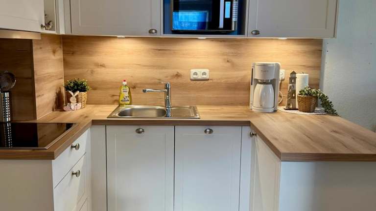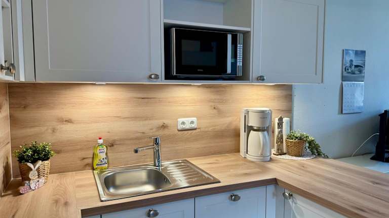 Die Ferienwohnung verfügt über ein Schlafzimmer und ein Wohnzimmer, in dem sich die Gäste wohlfühlen können. Die voll ausgestattete Küche ermöglicht eine unabhängige Selbstverpflegung.