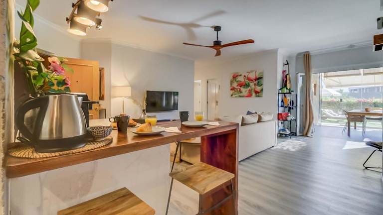 Die Apartments im Reserva del Higuerón sind komfortabel eingerichtet und verfügen über einen Balkon mit Poolblick. Jedes Apartment hat einen Sitzbereich, einen Kabel Flachbild-TV sowie eine voll ausgestattete Küche mit Kühlschrank und Geschirrspüler. Ein eigenes Badezimmer mit Dusche, Bidet und kostenlosen Pflegeprodukten ist ebenfalls vorhanden.