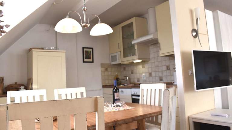 Die Ferienwohnung bietet zwei Schlafzimmer, ein Wohnzimmer sowie eine gut ausgestattete Küchenzeile mit Kühlschrank und Geschirrspüler. Handtücher und Bettwäsche werden bereitgestellt. Die Unterkunft hat zudem Nichtraucherzimmer.