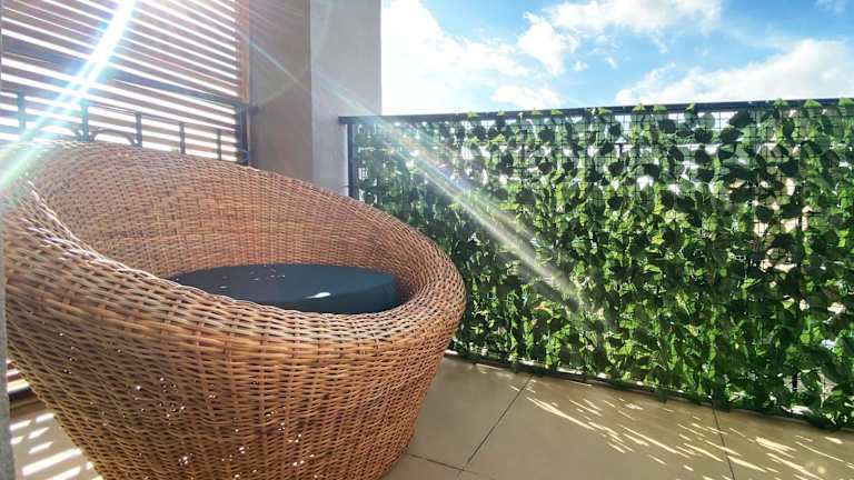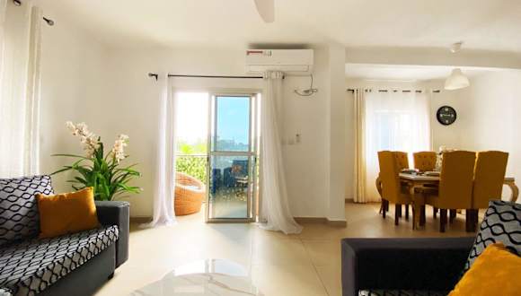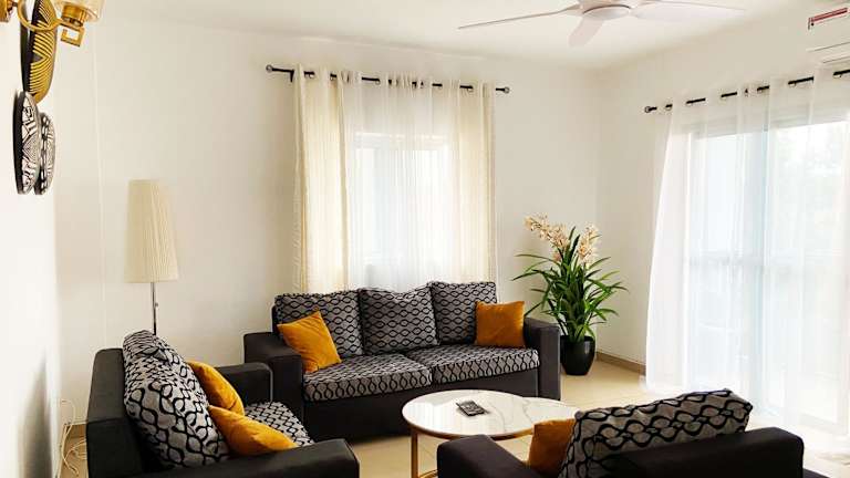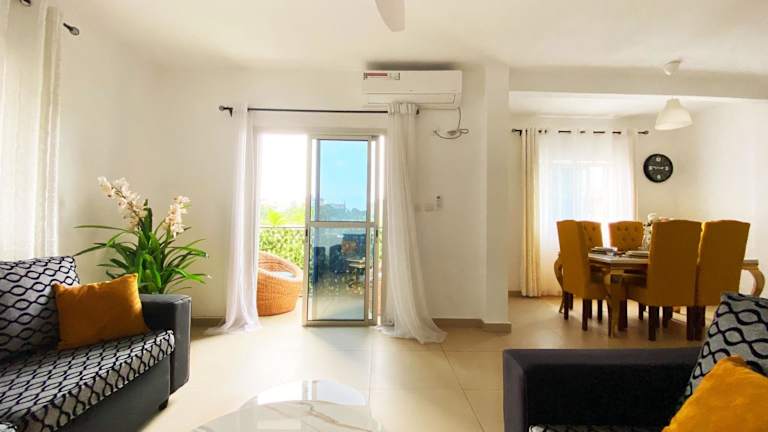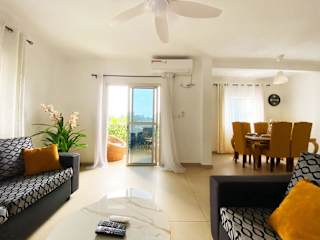 Das klimatisierte Apartment verfügt über zwei Schlafzimmer, ein Wohnzimmer und eine voll ausgestattete Küche mit Kühlschrank und Kaffeemaschine. Zur weiteren Ausstattung gehören zwei Badezimmer mit Dusche und Haartrockner. Handtücher und Bettwäsche werden zur Verfügung gestellt.