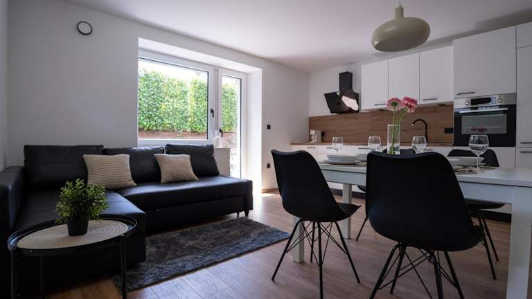 Die Residence Black&White bietet klimatisierte Übernachtungsmöglichkeiten, die mit modernem Komfort ausgestattet sind. Gäste können die Terrasse nutzen und profitieren von kostenlosem Wifi.