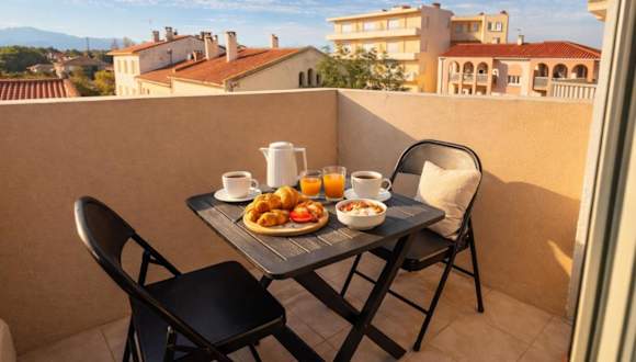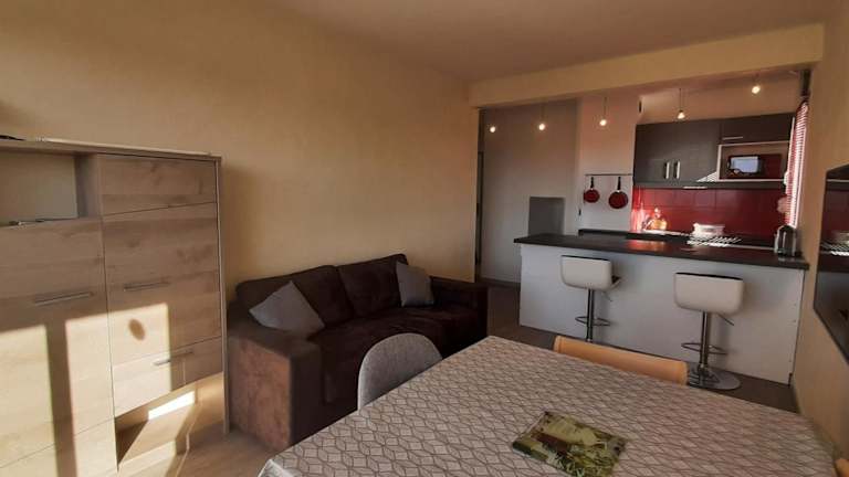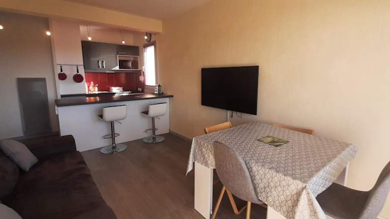 Die RESIDENCE DE LA PLAGE Appart ist eine Zweizimmerwohnung im zweiten Stock mit Bergblick, Terrasse und Balkon. Die Unterkunft wird von einem privaten Gastgeber geführt und eignet sich für Familien und Gäste, die keine Feste wie Junggesellenabschiede planen.