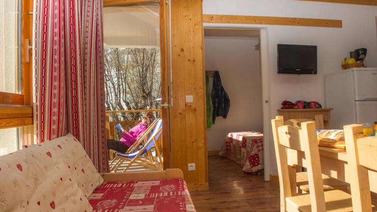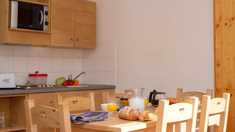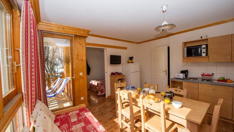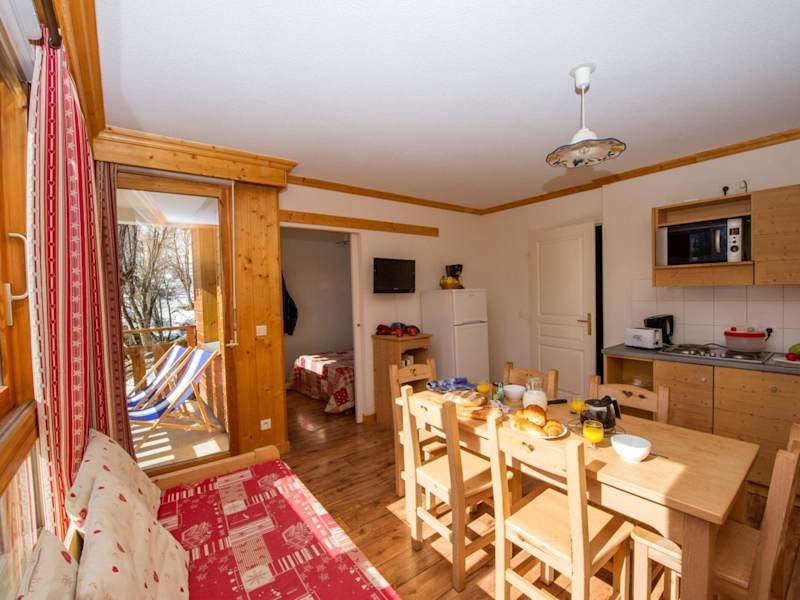Die Zimmer der Résidence Goélia Le Balcon des Neiges verfügen über einen Sitzbereich, einen Flachbild-TV, eine voll ausgestattete Küche mit Kühlschrank, Geschirrspüler, Mikrowelle und Toaster, sowie ein eigenes Badezimmer mit Badewanne. Bettwäsche und Handtücher sind im Preis inbegriffen, jedoch müssen die Betten selbst bezogen werden.
