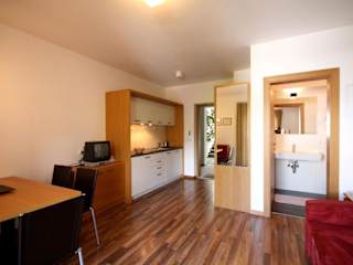 Die Apartments im Residence Haus Ragen sind modern, hell und freundlich eingerichtet. Sie verfügen über einen Eingangsbereich mit Garderobe und Safe, ein Badezimmer mit WC und Dusche sowie einen Haartrockner. Das Schlaf- und Wohnzimmer bietet ein Doppelbett, ein Schlafsofa, einen Schreibtisch, Sat-TV und WLAN. Jedes Apartment verfügt zudem über einen Balkon. Der separate Küchenbereich ist mit einem Glaskeramikherd, einem Kühlschrank und einem Spülbecken ausgestattet. Ein Essbereich ist ebenfalls vorhanden. Die Küche ist mit allen notwendigen Utensilien ausgestattet und Bettwäsche, Handtücher und Reinigungsmittel werden gestellt.