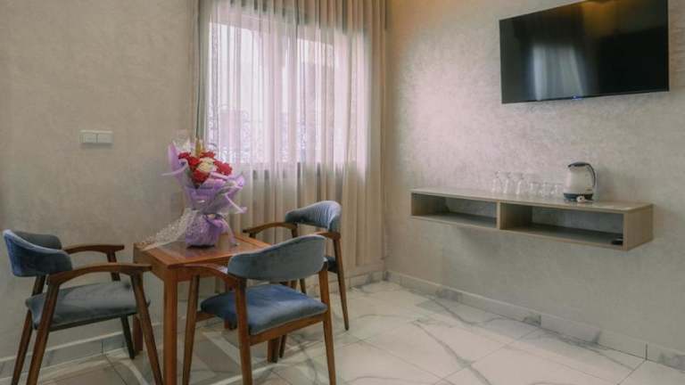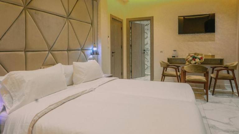 Die klimatisierten Apartments in der Résidence Hoteliére Chez Aziz verfügen über einen TV, eine Sitzecke und eine voll ausgestattete Küche mit Kühlschrank und Küchenutensilien. Jedes Apartment hat ein eigenes Bad, das mit einer Badewanne oder Dusche sowie einem Haartrockner ausgestattet ist. Gäste können vom Zimmer aus den Blick auf die Berge und die Stadt geniessen.