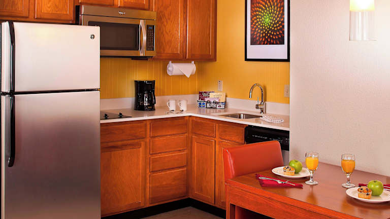 Ein kontinentales Frühstücksbuffet sorgt für einen guten Start in den Tag. Die Auswahl umfasst amerikanische Frühstücksoptionen. Für Snacks und kleinere Mahlzeiten gibt es diverse Möglichkeiten zur Selbstversorgung in den Zimmern, da diese mit einer Kochnische ausgestattet sind.