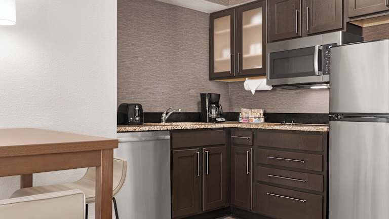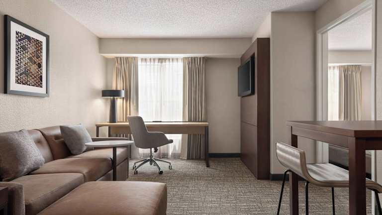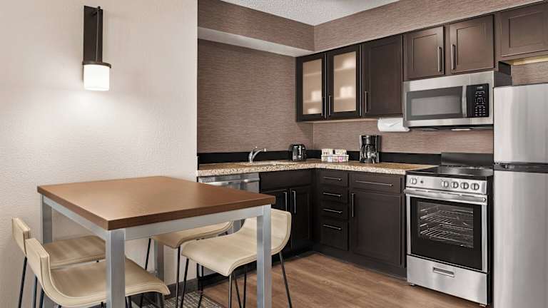 Die Suiten im Residence Inn Kansas City Independence sind geräumig und verfügen über eine voll ausgestattete Küche, einen großen Schreibtisch und kostenfreies WLAN. Einige Suiten sind mit einem Kamin ausgestattet, der für eine gemütliche Atmosphäre sorgt.