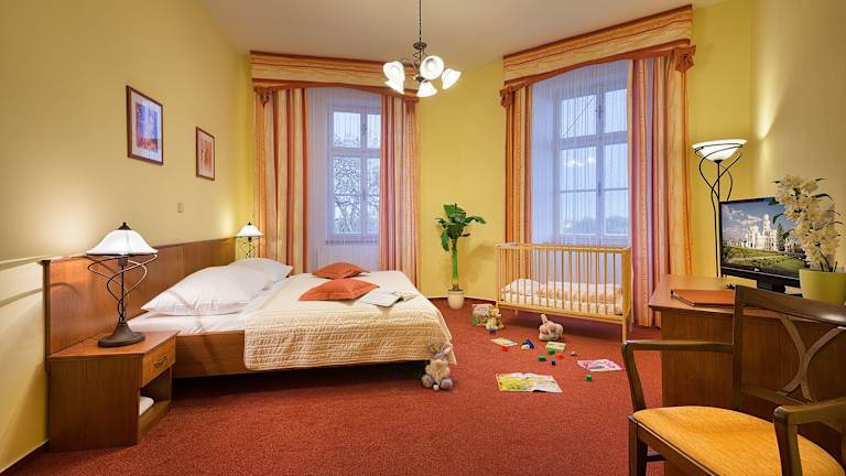 Jedes Zimmer in der Residence Knížecí Dvůr ist mit einem Kleiderschrank und einem eigenen Badezimmer ausgestattet. Bettwäsche ist ebenfalls vorhanden. Die Nichtraucherunterkunft sorgt dafür, dass alle öffentlichen und privaten Bereiche rauchfrei sind.