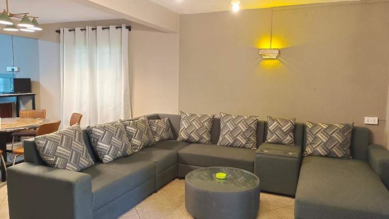 Die Ferienwohnung ist ausgestattet mit drei Schlafzimmern, einer gut eingerichteten Küche mit Kühlschrank und Mikrowelle, einem Flachbild-TV sowie einem gemütlichen Sitzbereich. Die beiden Badezimmer sind jeweils mit einer Dusche ausgestattet, was zusätzlichen Komfort bietet.