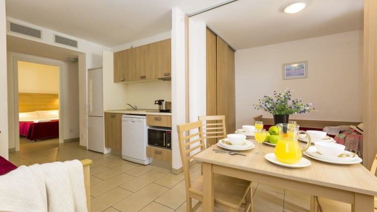 In der Résidence Odalys Les Voiles Blanches gibt es keine Verpflegungsmöglichkeiten vor Ort. Die Apartments verfügen jedoch über eine voll ausgestattete Küche, in der Sie Ihre eigenen Mahlzeiten zubereiten können. In der Nähe finden Sie auch eine Vielzahl von Restaurants, in denen Sie lokale Spezialitäten und internationale Gerichte genießen können.