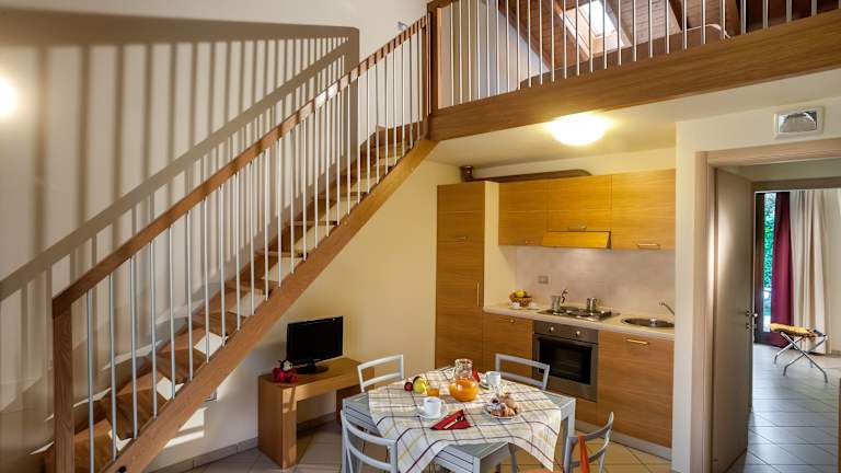 Die Apartments sind mit modernen Möbeln ausgestattet und bieten 1 oder 2 separate Schlafzimmer, ein Wohnzimmer, eine komplett ausgestattete Küche sowie ein Bad. Alle Apartments verfügen über einen Flachbild-Sat-TV und einen gemütlichen eigenen Garten, der mit einem Tisch und Stühlen möbliert ist.